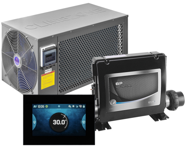 Ce pack associe un système de contrôle Balboa hautes performances, une pompe à chaleur réversible Clim8zone et un clavier tactile dernière génération.