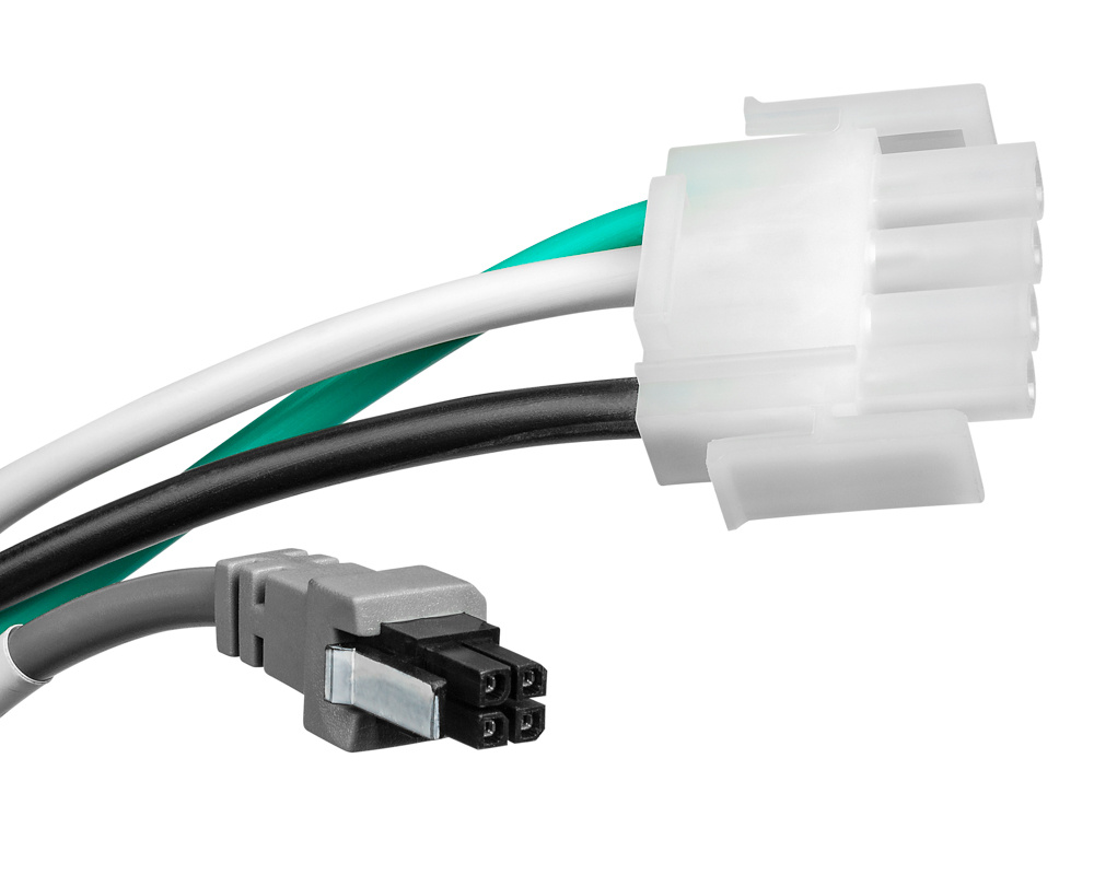 L’alimentation électrique s’effectue via une prise AMP à 4 broches d’une longueur de 4 mètres, à raccorder directement sur la sortie AV du système de contrôle Balboa.