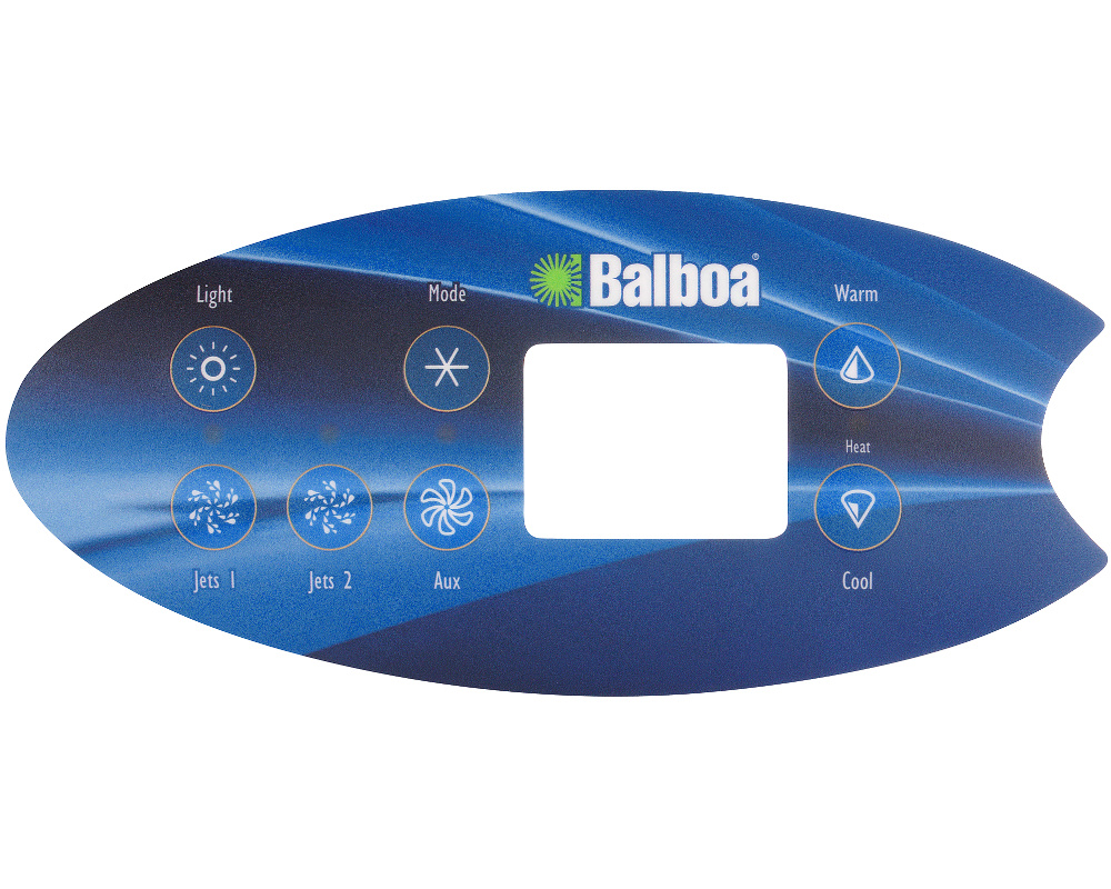 Cette façade adhésive est conçue pour les claviers Balboa VL702S et ML554. Elle reprend l’interface complète à sept commandes utilisée sur les configurations avec deux pompes, contrôle de température et fonction auxiliaire ou souffleur.