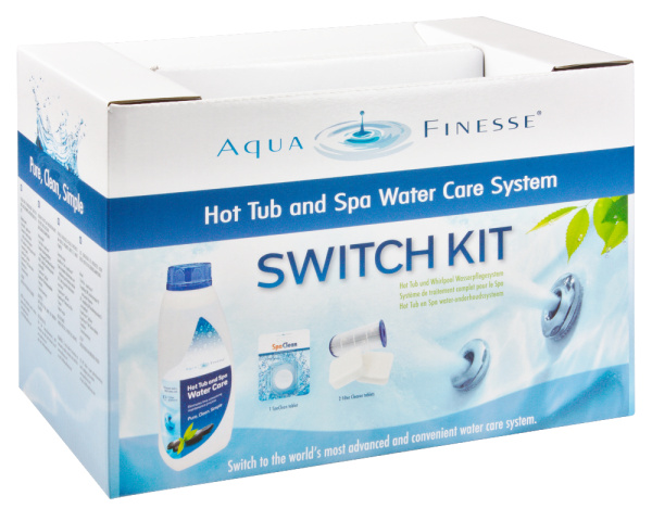 Le coffret de démarrage Switch Kit AquaFinesse est conçu pour nettoyer efficacement un spa et découvrir la solution AquaFinesse sur une période de 6 à 8 semaines. Il permet de passer à AquaFinesse dans de bonnes conditions et d’adopter un entretien simple, avec un seul geste par semaine, pour une eau propre, cristalline, sûre et sans odeur.