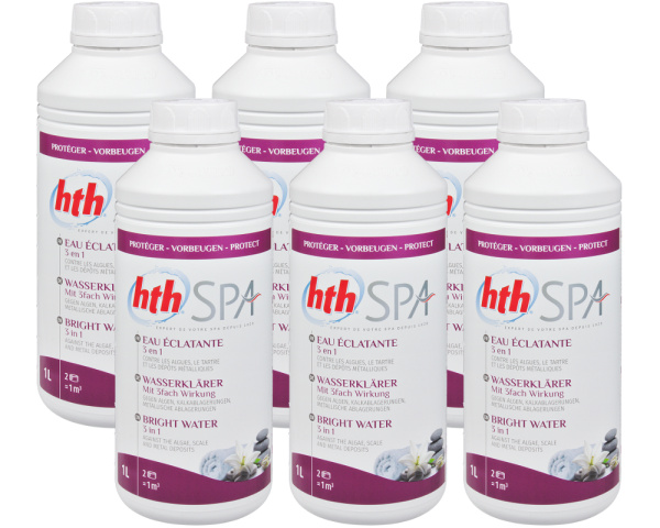 Eau Éclatante 3 en 1 HTH – carton de 6 × 1 L – clarifiant spa