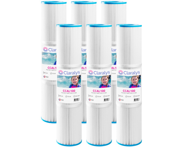 Ce carton de 6 filtres Claralys CCAL100 est destiné aux spas nécessitant une cartouche longue à double ouverture Ø 54 mm. Ce conditionnement permet d’assurer un entretien régulier sur plusieurs cycles de remplacement tout en maintenant une filtration constante et efficace de l’eau du spa.