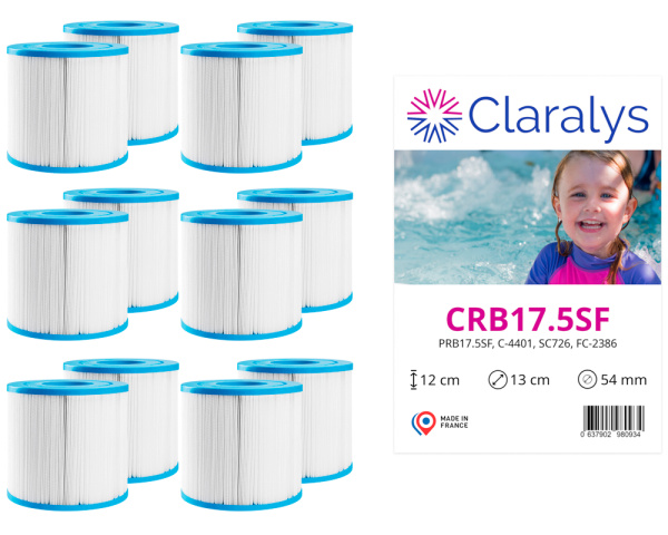 Ce carton de 6 paires de filtres Claralys CRB17.5 est destiné aux spas équipés d’un skimmer étroit à chargement vertical. Chaque paire se compose de deux filtres installés l’un au-dessus de l’autre dans un skimmer comprenant un panier rond et un élément plastique en forme de soucoupe positionné en partie basse.