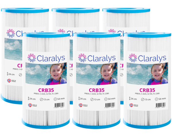 Ce conditionnement comprend un carton de 6 filtres Claralys CRB35, compatibles avec le modèle PRB35. Ces cartouches à double ouverture Ø 54 mm assurent une filtration fiable et homogène de l’eau du spa.