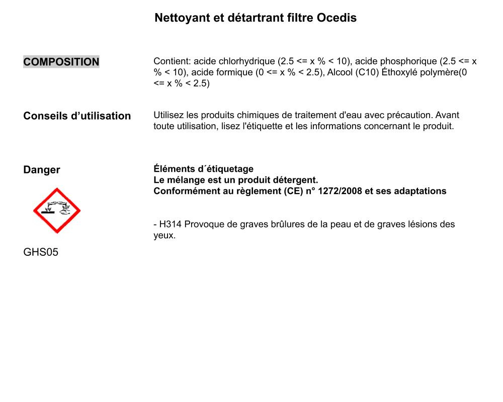 Nettoyant et détartrant filtre Ocedis – filtres spa et piscine